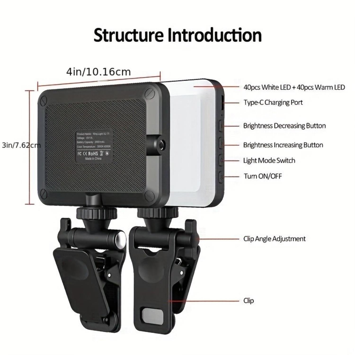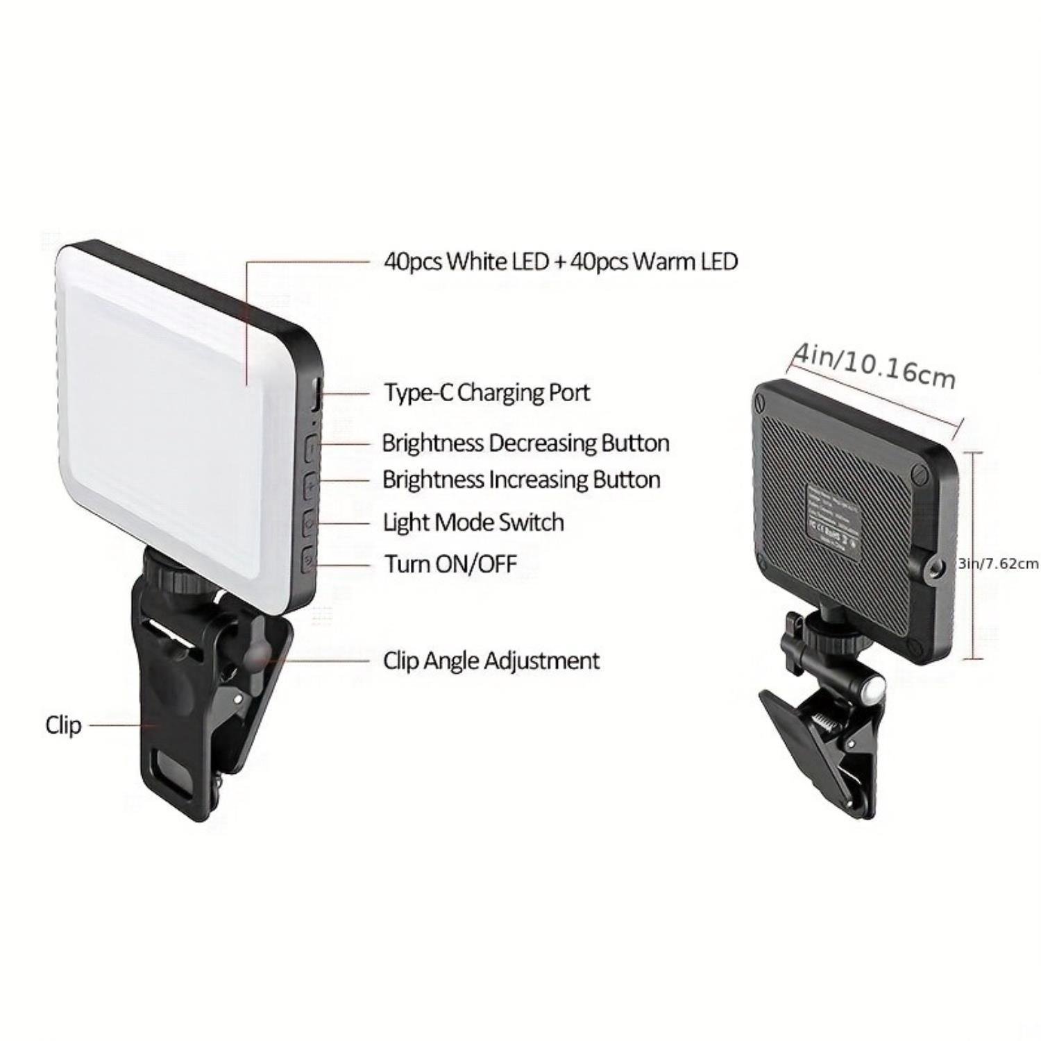 1.Clip-on Design Easy and secure attachment, our selfie light for phone easily clips onto your device without obstructing the camera or screen. With silicone padding inside, your device is protected from scratches, and the 180-degree adjustable angle offers the optimal lighting direction. There is a cold shoe mount with ¼" thread embedded for cameras, tripods, selfie sticks, make it ideal for photography, video recording or traveling